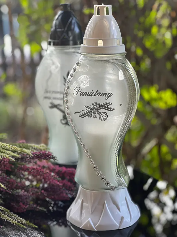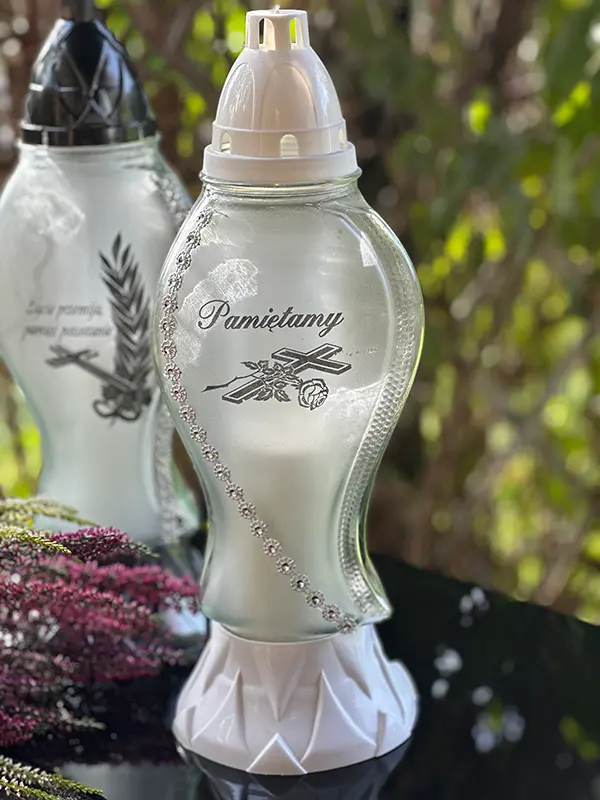 Sklenená sviečka biela S785 "Pamätáme si" (35cm)